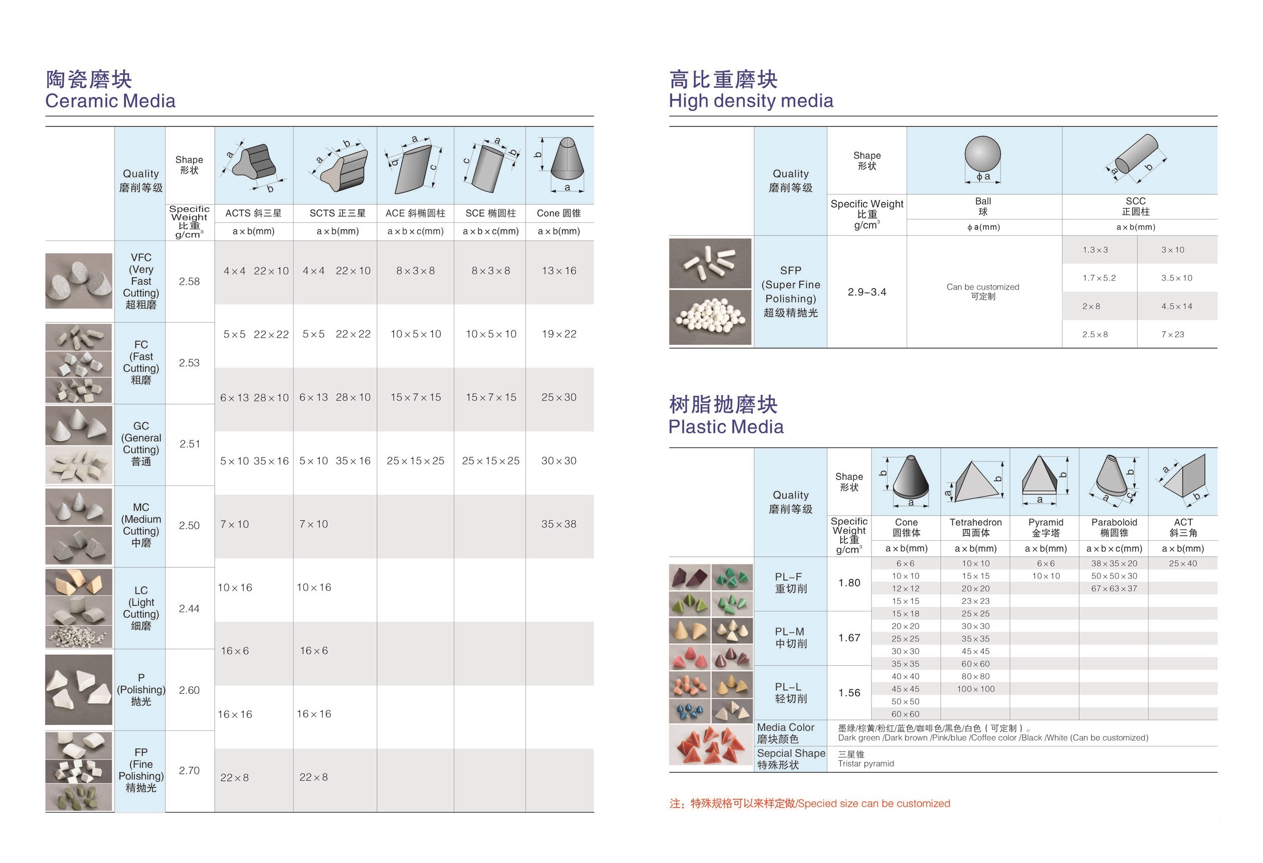 Suntek Surface Finishing Media can offer solutions for practically any conceivable finishing problem. We developed a near-perfect range of grinding and polishing media made from different materials, in different shapes and sizes and with different abrasive characteristics. It have been widely used in deburring, rough/fine grinding, polishing, cleaning, degreasing, descaling, corrosion protection, rust removal, ball burnishing for ferrous, steel, stainless steel, copper, titanium alloy and etc. products.